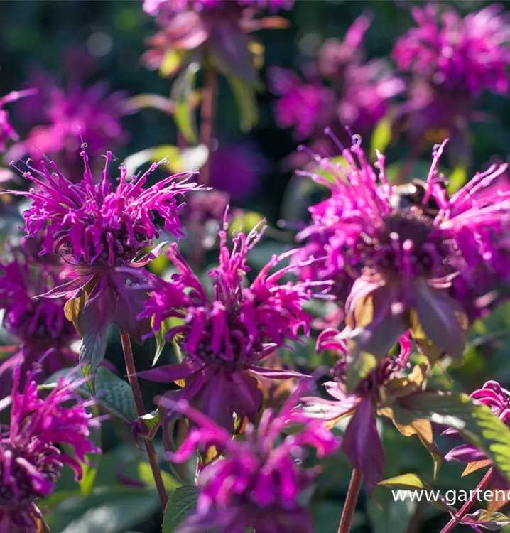 Die Garten-Indianernessel 'On Parade' (Monarda fistulosa) ist eine aufrechte, verzweigte Staude, die von Juli bis August rote, lippenförmige, in Quirle angeordnete Blüten bildet. An einem sonnigen Standort mit durchlässigem, nährstoffreichem Boden erreicht sie gewöhnlich eine Höhe von ca. 1,2 m und wird ca. 80 cm breit. Die Garten-Indianernessel 'On Parade' ist gut frostverträglich.