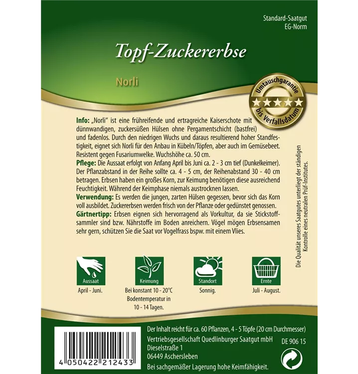 Die Kiefelerbse 'Norli' ist im Gemüsegarten, aber auch zum Kochen, für Salat oder für Suppen & Eintöpfe sehr beliebt.