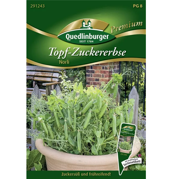 Die Kiefelerbse 'Norli' (Pisum sativum) bildet Hülsenfrüchte, die süß, aromatisch schmecken und bereits ab Juli geerntet werden können. Für das optimale Wachstum der Kiefelerbse 'Norli' werden ein sonniger Standort und durchlässiger, nährstoffreicher Boden benötigt.
