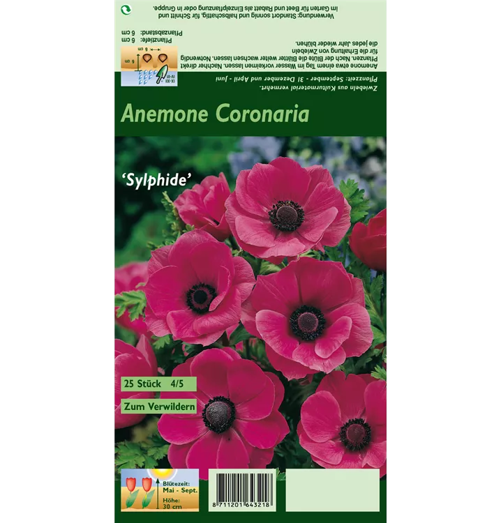 Die beste Pflanzzeit für Anemone coronaria 'Sylphide' ist September - Dezember oder April - Mai.