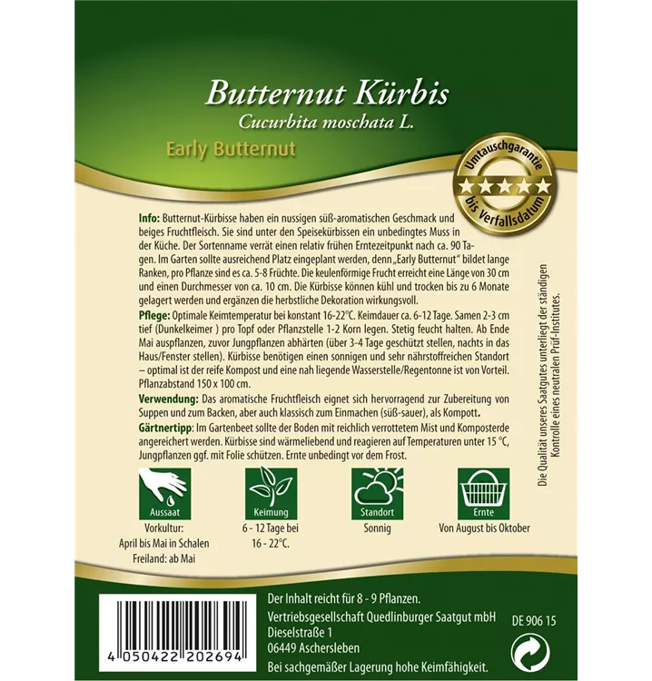 Der Kürbis 'Early Butter Nut F1' ist im Gemüsegarten, aber auch für Marmeladen & Gelee, zum Backen, zum Kochen, für Süßspeisen, zur Dekoration oder zum Verzehr sehr beliebt.