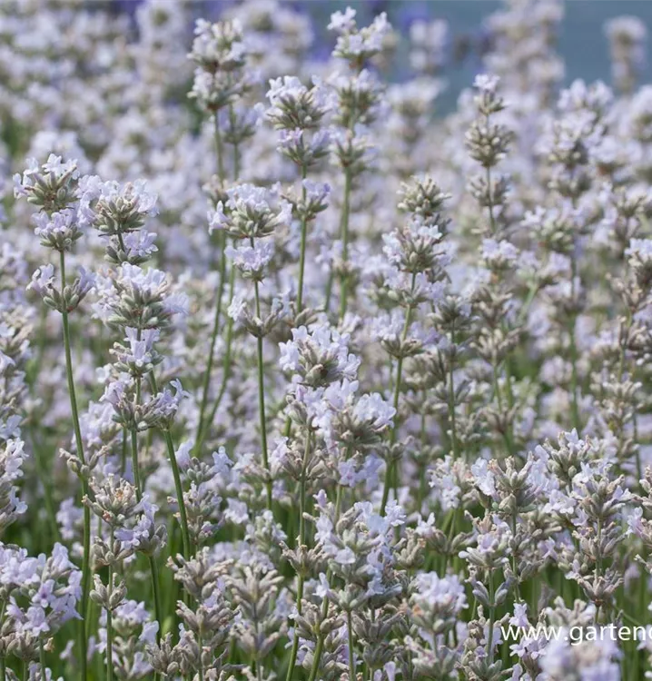 Lavandula angustifolia 'Loddon Pink' bildet rachenförmige, in Rispen angeordnete, hellrosafarbene Blüten ab Juli. Diese verströmen einen angenehmen Duft.