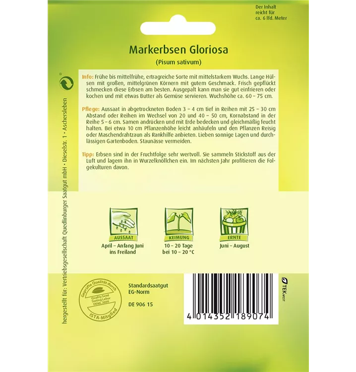 Die Mark-Erbse 'Gloriosa' ist im Gemüsegarten, aber auch zum Kochen, für Salat oder für Suppen & Eintöpfe sehr beliebt.