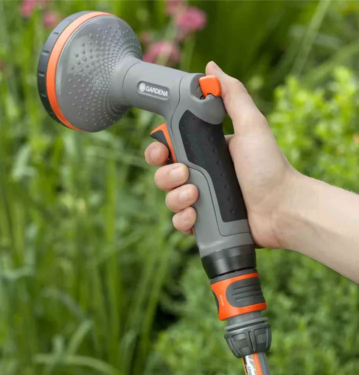 Die Comfort Brause für Beete eignet sich besonders gut zum Bewässern von Beeten und größeren Pflanzflächen, denn der Brausestrahl kann an die Beetgröße angepasst werden. Die Weichkunststoffelemente im ergonomisch geformten Handgriff bieten höchsten Komfort bei der Anwendung. Zudem lässt sich der Wasserdurchfluss stufenlos regulieren. Wenn Sie dauerhaft bewässern möchten, kann die Auslösetaste arretiert werden. Die innovative Tropfsicherung verhindert ein Nachtropfen nach dem Gebrauch. Die integrierte Frostschutztechnologie macht die Brause besonders langlebig.