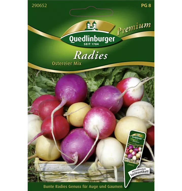 Das Radieschen 'Ostereier Mischung' ist im Bauerngarten, aber auch im Gemüsegarten, zum Frischverzehr, für Salat oder für Saucen & Dips sehr beliebt.