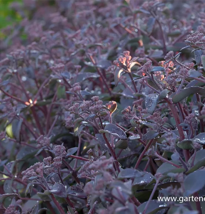 Das Rotbraunblättriges Garten-Fettblatt 'Xenox'® (Sedum telephium) ist eine buschige Staude, die von September bis Oktober dunkelrosafarbene, in Dolden angeordnete Blüten bildet. An einem sonnigen Standort mit durchlässigem, nährstoffreichem Boden erreicht es gewöhnlich eine Höhe von ca. 50 cm und wird ca. 40 cm breit. Das Rotbraunblättriges Garten-Fettblatt 'Xenox'® ist gut frostverträglich.