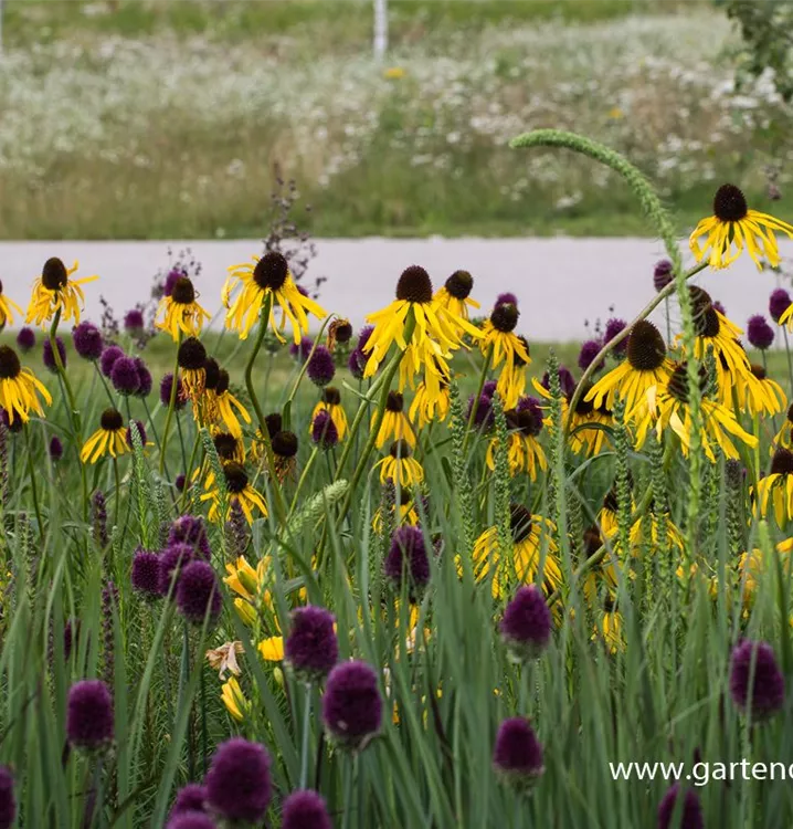 Bleicher Scheinsonnenhut, Zartes Federgras, Riesen-Sonnenhut.