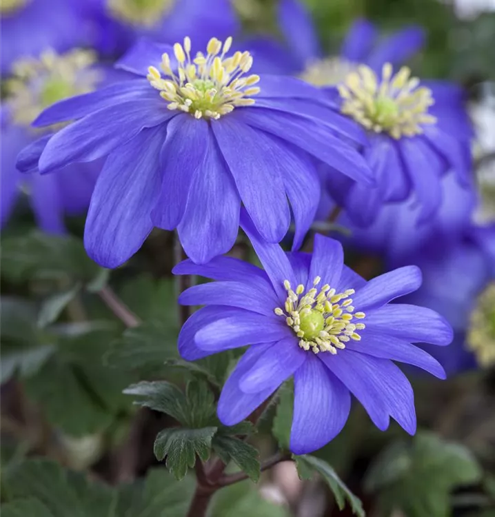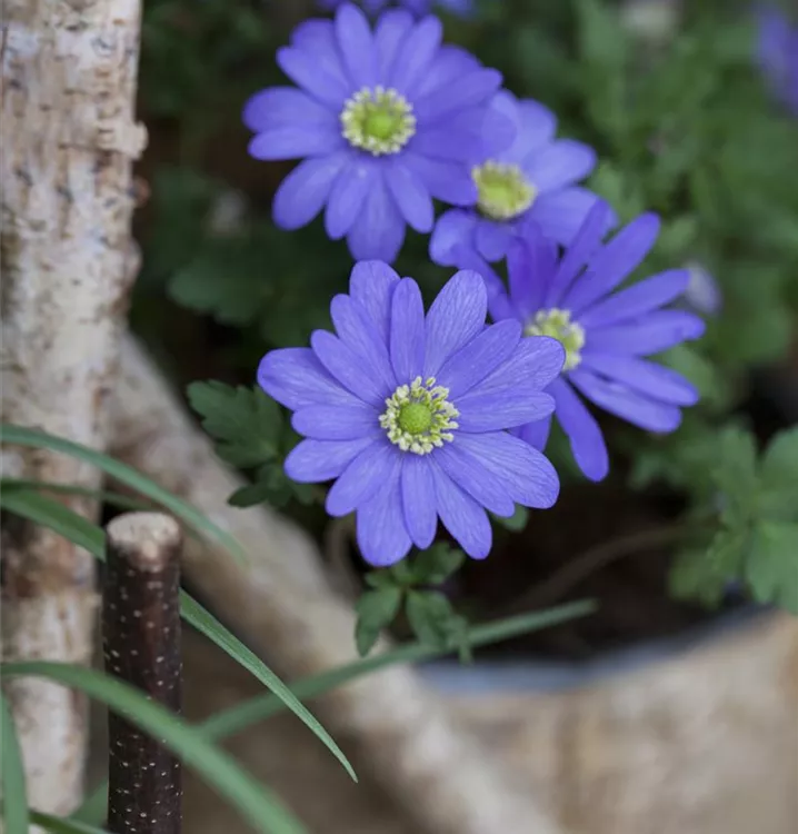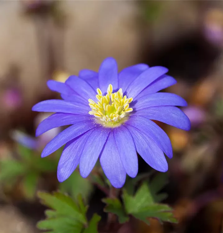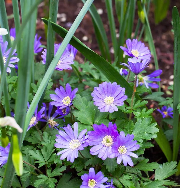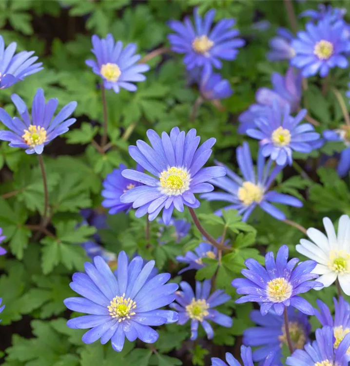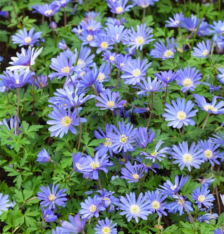 Welch eine Pracht, wenn das Strahlen-Windröschen ab März seine herrlichen, blauen, strahlenförmigen Blüten hervorbringt! Über den mittelgrünen, handförmigen Blättern mit ihrem gelappten Rand kommen die Blüten besonders gut zur Geltung. Wird Anemone blanda an einen sonnigen bis halbschattigen Standort mit durchlässigem, humosem und kalkfreiem Boden gepflanzt, entwickelt es sich besonders gut. Es wächst rhizombildend, horstbildend und erreicht Größen von 8 cm bis 10 cm bei einer Breite von 5 cm bis 10 cm.