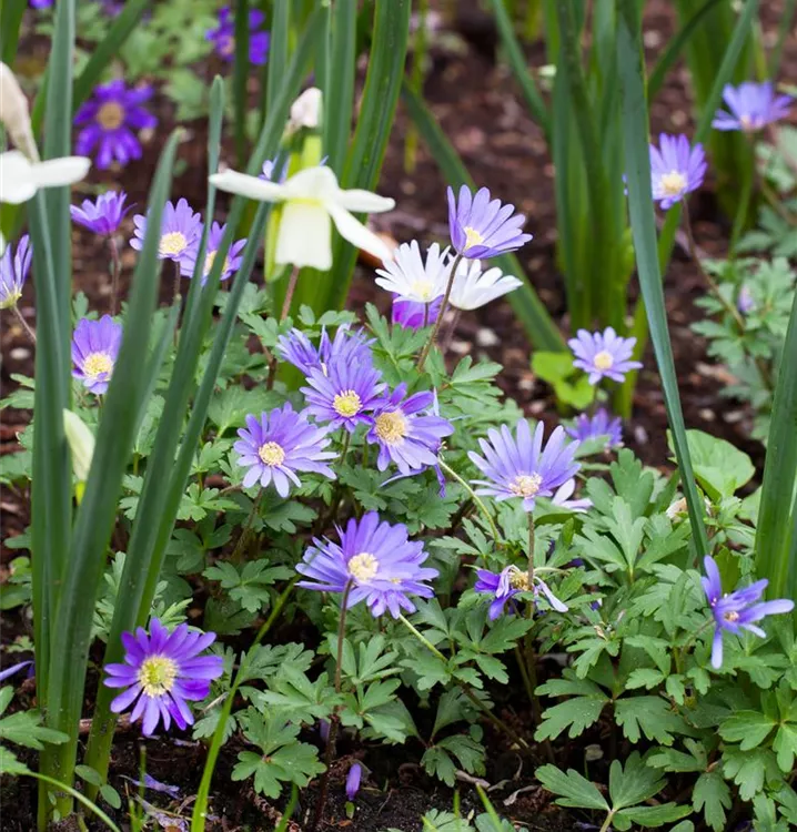 Zusammengepflanzt mit Gefüllte Narzisse bildet das Strahlen-Windröschen einen harmonischen Anblick.