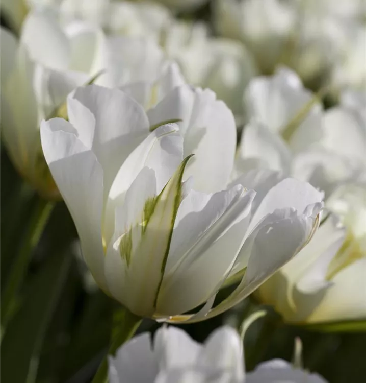 Zwischen März und April lässt die Tulpe 'Exotic Emperor' ihre Blüten in Weiß erstrahlen und ihren angenehmen Duft verbreiten.