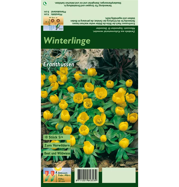 Welch eine Pracht, wenn der Winterling ab Februar seine herrlichen, gelben Blüten hervorbringt! Das Besondere: sie verbreiten einen angenehmen Duft. Über den dunkelgrünen, gefingerten Blättern kommen die Blüten besonders gut zur Geltung. Wird Eranthis hyemalis an einen sonnigen bis halbschattigen Standort mit kalkhaltigem und lehmigem Boden gepflanzt, entwickelt er sich besonders gut. Er wächst flach und erreicht Größen von 6 cm bis 10 cm bei einer Breite von 3 cm bis 5 cm. Sehr dekorativ macht sich der Winterling auch in Kübeln oder Kästen.