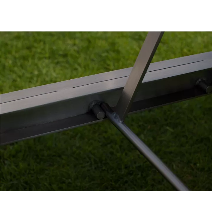 Die Sonnenliege RIVIERA punktet mit geradlinigem Design und hochwertiger Verarbeitung. Das Gestell ist aus gebürstetem, rostfreiem Edelstahl gefertigt und passt besonders gut in modern gestaltete Außenbereiche. Hohen Liegekomfort und variable Nutzung bietet die mehrfach verstellbare Rückenlehne. Dank der Nylon-Räder, die eine hohe Verschleißfestigkeit prägt, ist die Sonnenliege zudem leicht rollbar. Die Liegefläche ist mit einem Original Batyline® Gewebe in Silber bezogen, dessen Nähte zusätzlich verschweißt sind und somit eine lange Haltbarkeit garantieren. Der Stoff ist darüber hinaus besonders reißfest, UV-resistent, formstabil und leicht zu reinigen. Im Unterschied zu anderen Outdoor-Stoffen ist die Batyline®-Faser komplett durchgefärbt und daher besonders farbecht. Damit ist die RIVIERA Sonnenliege ein qualitativ hochwertiges Outdoor-Möbel, an dem Sie lange Freude haben werden!