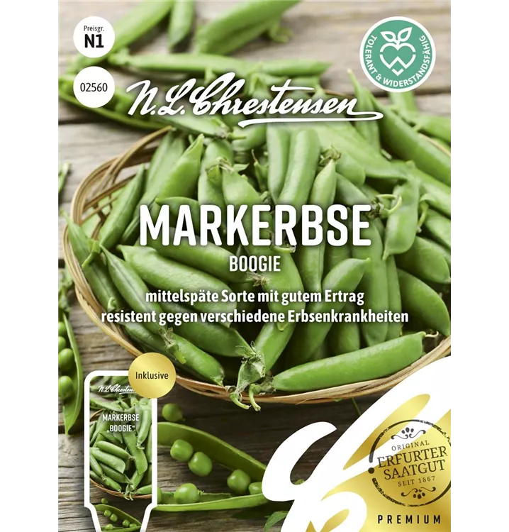 Die Markerbse 'Boogie' ist im Gemüsegarten, aber auch zum Kochen, für Salat oder für Suppen & Eintöpfe sehr beliebt.