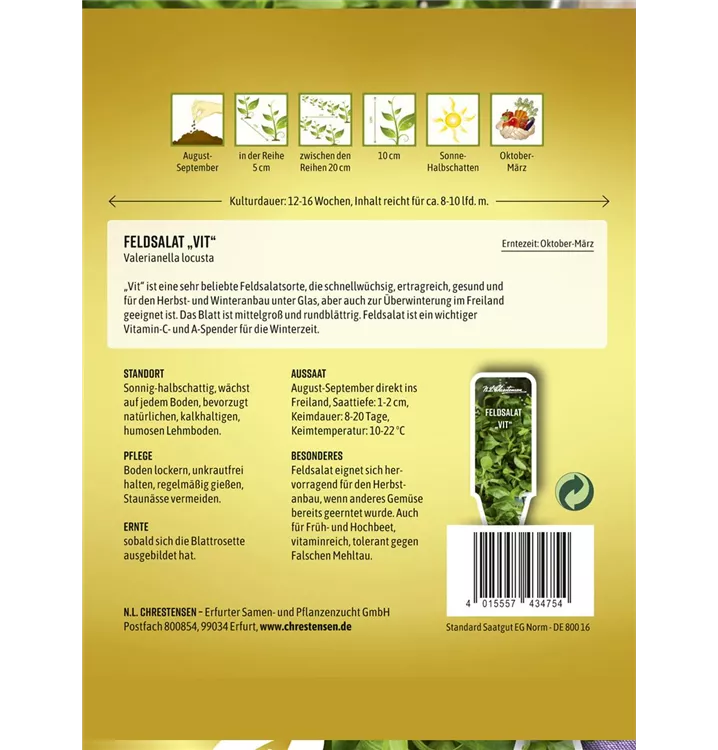 Der Feldsalat 'Vit' ist im Bauerngarten, aber auch im Gemüsegarten, zum Frischverzehr oder für Salat sehr beliebt.