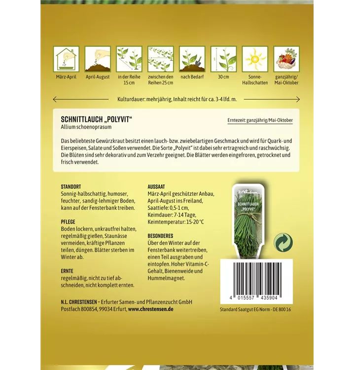 Der Schnittlauch 'Polyvit' ist als Kübelpflanze, aber auch im Bauerngarten, zum Verzehr, zum Kochen, für Salat oder für Saucen & Dips sehr beliebt.