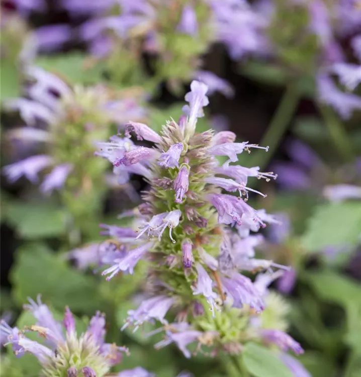 Agastache rugosa 'Little Adder' bildet lippenförmige, in Ähren angeordnete, violette Blüten ab Juni. Diese verströmen einen angenehmen Duft.