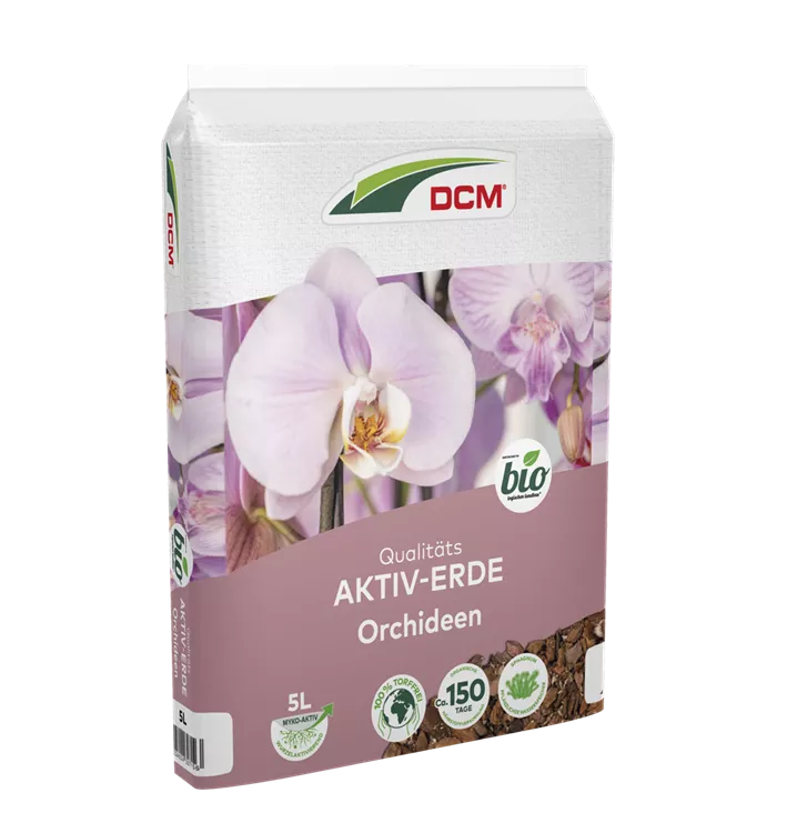 Aktiv-Erde mit Weißtorfbröckchen und Dekorrinden für eine optimale Drainage, enthält organischen Dünger für 100 Tage.