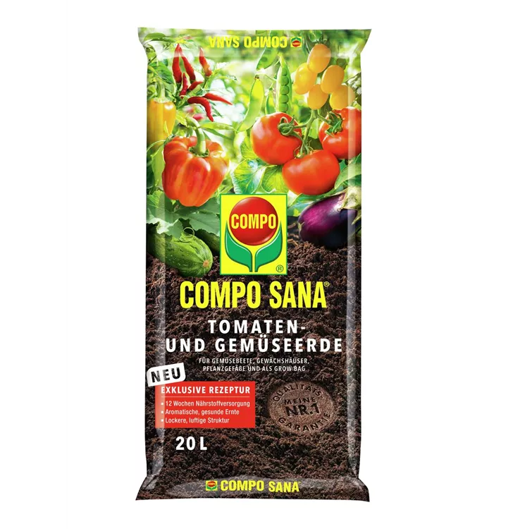 Hochwertige Spezialerde für Tomaten und alle stark zehrenden Gemüsesorten. Der auf die Bedürfnisse der Pflanzen abgestimmte Sofort- und Langzeitdünger gewährleistet eine bis zu 12 Wochen optimale Nährstoffversorgung. Mit COMPO Gärtnerhumus für eine lockere, luftige Struktur und eine gesunde, aromatische Ernte.