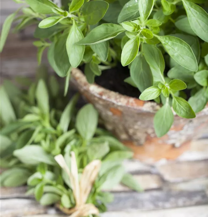 Zu viel Dünger schadet dem Kräuteraroma! Versorgen Sie Kräuter in Pflanzgefäßen einmal im Frühjahr mit Kräuterdünger. Im Garten ausgepflanzt, genügt eine Kompostgabe zum Saisonstart.