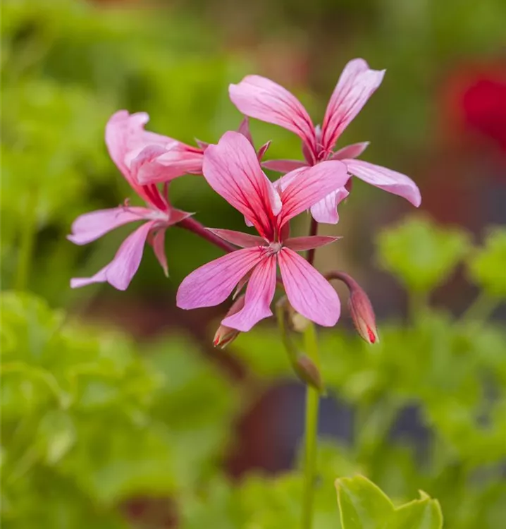 Die Hängegeranie 'Ville de Paris Rosa' (Pelargonium peltatum) ist eine beliebte Pflanze für den Balkon. Die unzähligen Blüten erscheinen, je nach Sorte, in verschiedenen Farben die ganze Saison hindurch. Ein sonniger bis halbschattiger Standort und ein durchlässiges Substrat werden bevorzugt.