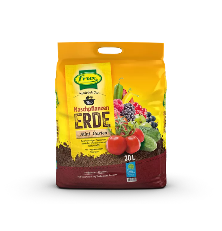 Die frux Bio Naschpflanzenerde bietet den Pflanzen auch auf kleinstem Raum, im Topf, Balkonkasten oder Pflanzkübel eine optimale Basis für das gesunde Wachstum. Der in der Erde enthaltene organische Dünger gibt seine Nährstoffe nach und nach bedarfsgerecht an die Pflanzen ab.