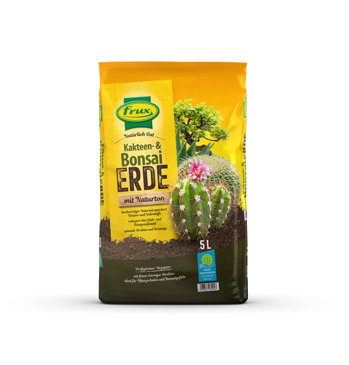 Die frux Kakteen- & Bonsaierde ist ein gebrauchsfertiges Pflanzsubstrat aus dem bewährten frux Erdensortiment für Bonsai, Kakteen und andere Sukkulenten. Die für diese Pflanzen wichtige Luft- und Wasserführung wird durch die Zugabe von Quarzsand, Bims und die hervorragende Struktur der Erde gesichert. Der hohe Anteil an Tonmineralien sorgt für einen ausgezeichneten Nährstoffspeicher. Die Erde enthält speziell auf Bonsai, Kakteen und andere Sukkulenten abgestimmte Dünger. Der optimale pH-Wert sichert eine gute Pflanzenentwicklung.