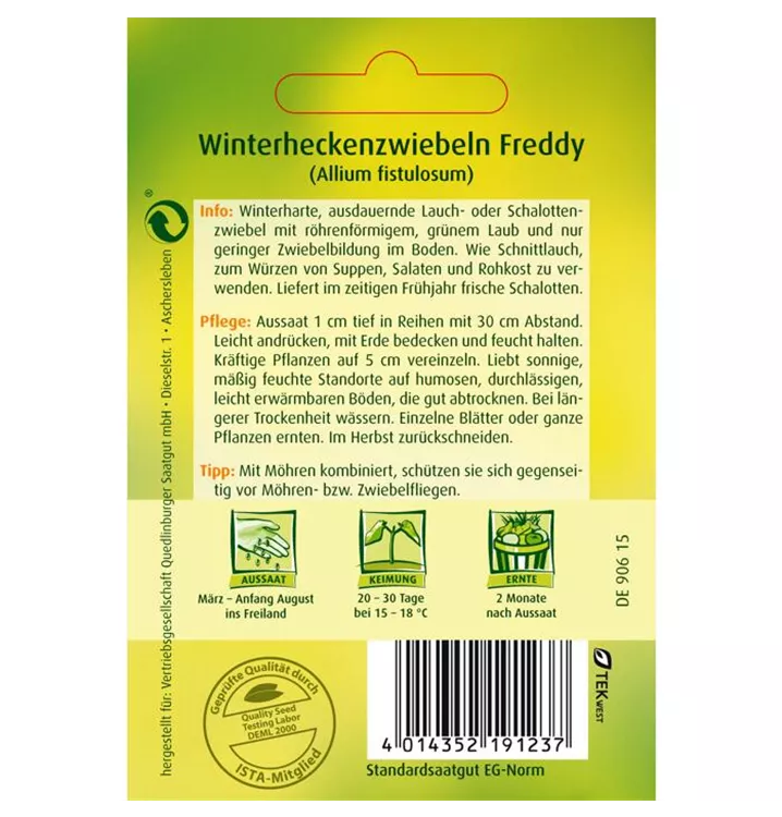 Winterharte, ausdauernde Lauch- oder Schalottenzwiebel mit röhrenförmigem, grünem Laub und nur geringer Zwiebelbildung im Boden. Wie Schnittlauch, zum Würzen von Suppen, Salaten und Rohkost zu verwenden. Liefert im zeitigen Frühjahr frische Schalotten.