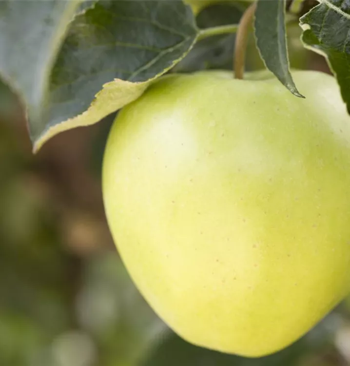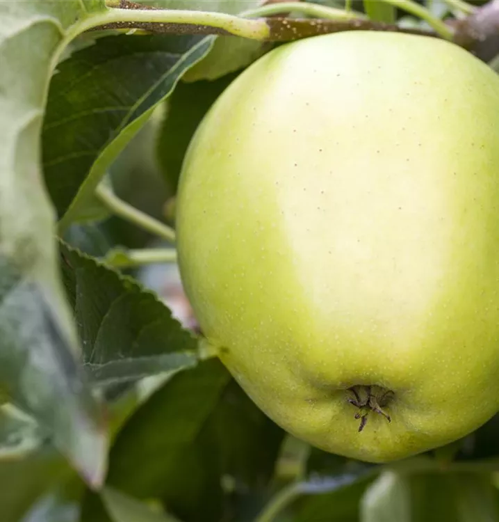 Der Apfel 'Golden Delicious' ist sommergrün.
