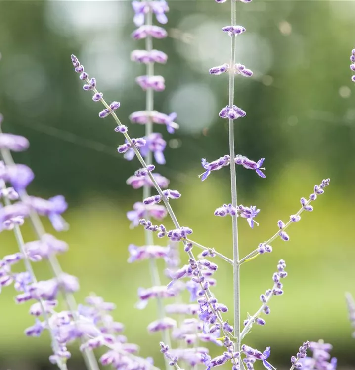 Die Blauraute 'Blue Spire' (Perovskia atriplicifolia) ist ein aufrechter, feintriebiger, lockerer Halbstrauch, der blaue, in Ähren angeordnete Blüten mit einem angenehmen Duft hervorbringt. Sie erscheinen von Juli bis Oktober. Ihre Rinde ist silbergrauduftend. An einem sonnigen Standort mit durchlässigem, sandigem Boden erreicht sie gewöhnlich eine Höhe von ca. 1,5 m und wird ca. 1,5 m breit.
