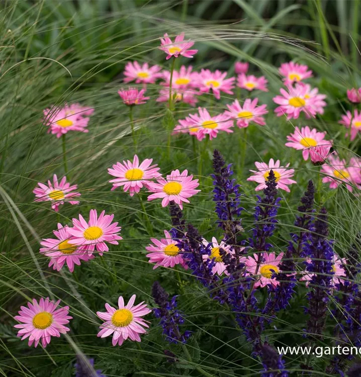 Die Bunte Garten-Margerite 'Laurin' setzt schöne Akzente gemeinsam mit: