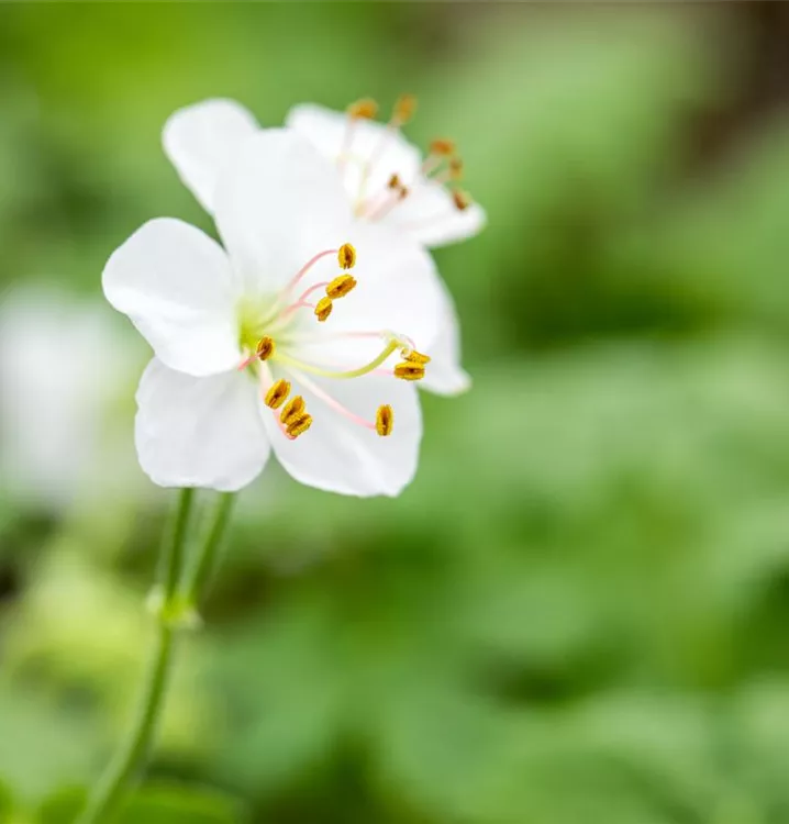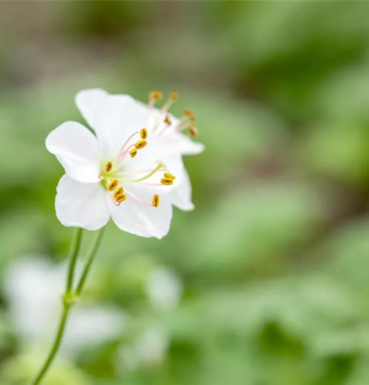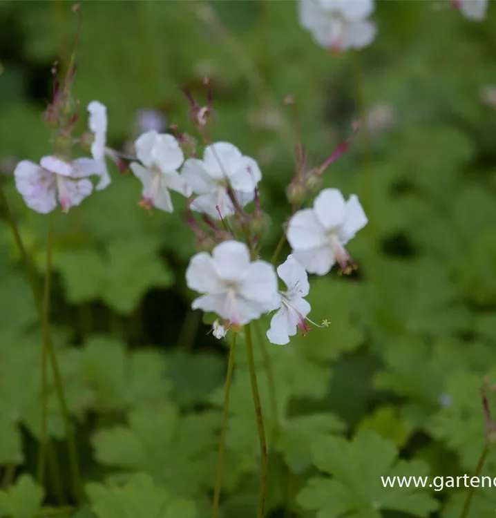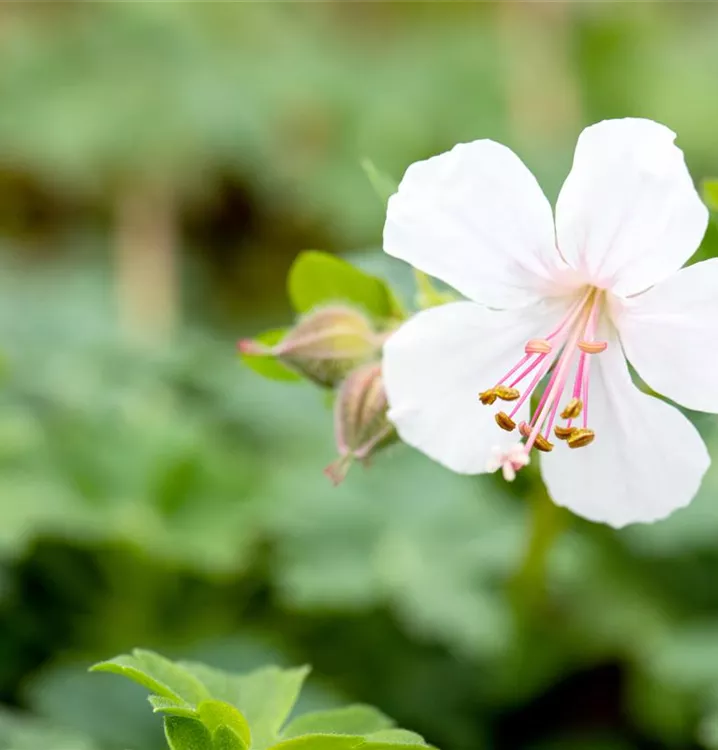 Geranium x cantabrigiense 'Biokovo' bildet hellrosafarbene Blüten ab Mai.