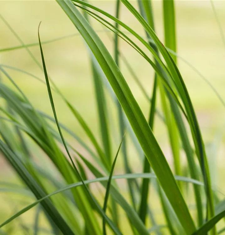 Die wintergrünen Blätter des Kleinen Garten-Pampasgrases 'Pumila' sind dunkelgrün, lineal.