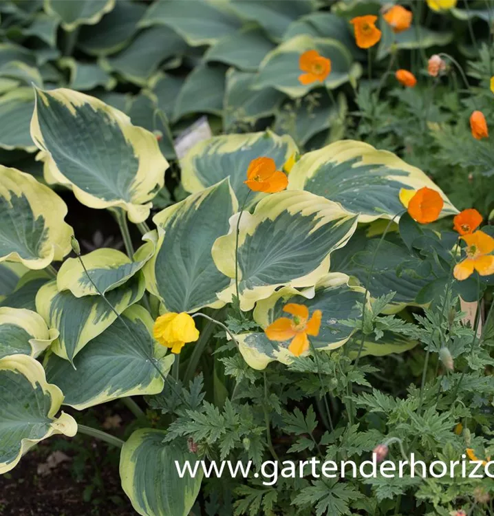 Die Garten-Funkie 'Orions Belt' (Hosta x fortunei) ist eine aufrechte, horstbildende Staude mit dekorativen, herzförmigen, dunkelgrünen Blättern. An einem halbschattigen Standort mit durchlässigem, humosem Boden erreicht sie gewöhnlich eine Höhe von ca. 70 cm und wird ca. 60 cm breit. Die Garten-Funkie 'Orions Belt' ist gut frostverträglich.