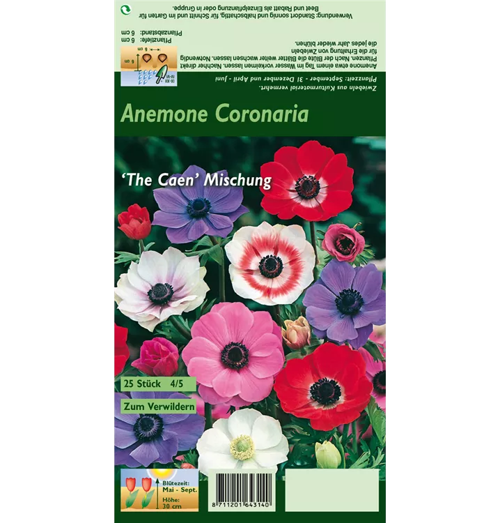 Die beste Pflanzzeit für Anemone coronaria 'De Caen' ist September - Dezember oder April - Mai.