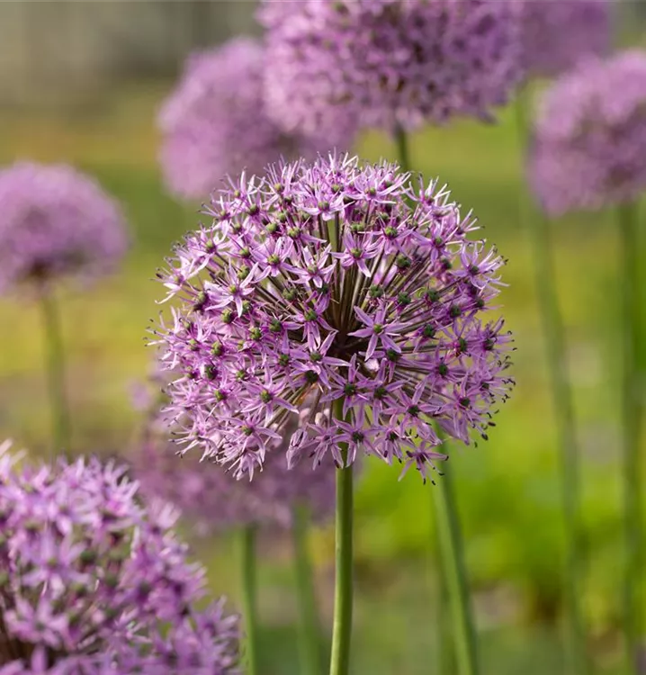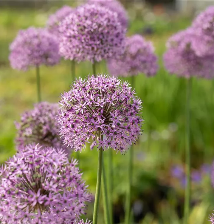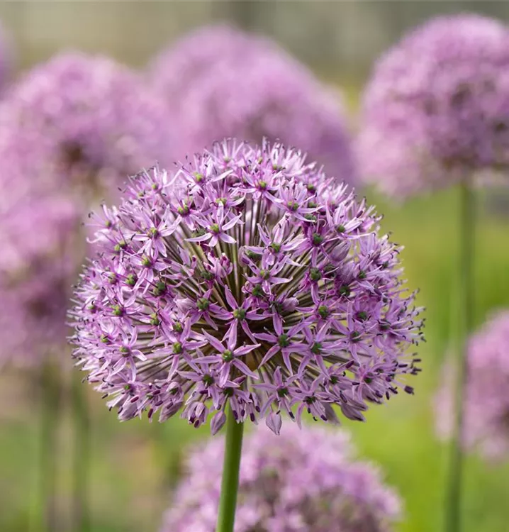 Zwischen Mai und Juni lässt der Garten-Kugel-Lauch 'Gladiator' seine Blüten in Purpurviolett erstrahlen. Die ballförmigen Blüten sind in Dolden angeordnet.