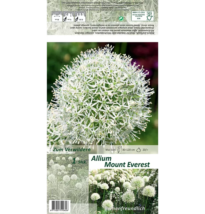 Welch eine Pracht, wenn der Garten-Zier-Lauch 'Mount Everest' ab Mai seine herrlichen, weißen Blüten hervorbringt! Über den dunkelgrünen, lanzettlichen Blättern kommen die Blüten besonders gut zur Geltung. Wird Allium stipitatum 'Mount Everest' an einen sonnigen Standort mit durchlässigem, humosem und nährstoffreichem Boden gepflanzt, entwickelt er sich besonders gut. Er wächst aufrecht und erreicht Größen von 1 m bis 1,2 m bei einer Breite von 40 cm bis 50 cm.