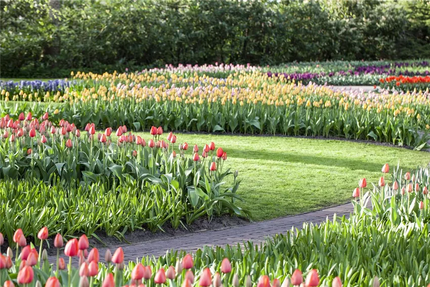 Verbunden werden die Gartenräume durch Wege. Überlegen Sie, welche Wirkung Sie mit ihnen erzielen wollen. Geschwungene Wege verlängern das Grundstück und sorgen für Dynamik, gerade Pfade mit hellem Belag können dem Garten räumliche Tiefe geben. Jeder Weg sollte ein Ziel haben (eine Terrasse, eine Bank oder Skulptur), optisch wird der Garten verlängert, wenn der Fixpunkt, etwa ein mächtiger Solitär, außerhalb des Grundstücks liegt. Schenken Sie auch der Randgestaltung einen Gedanken: Gepflegt wirken Randsteine als Abschluss, harmonisch und abwechslungsreich Pflanzen, die von den Rabatten aus in den Weg hinein wuchern dürfen. Unschön und lästig beim Rasenmähen sind Kieselsteine, die mit der Zeit in den grünen Freizeitteppich hineinwandern. Um den Übergang von einem „Zimmer“ ins nächste zu markieren, bieten sich Rosenbögen aus Metall oder Holz an. Der Garten gewinnt durch sie an vertikalen Strukturen.