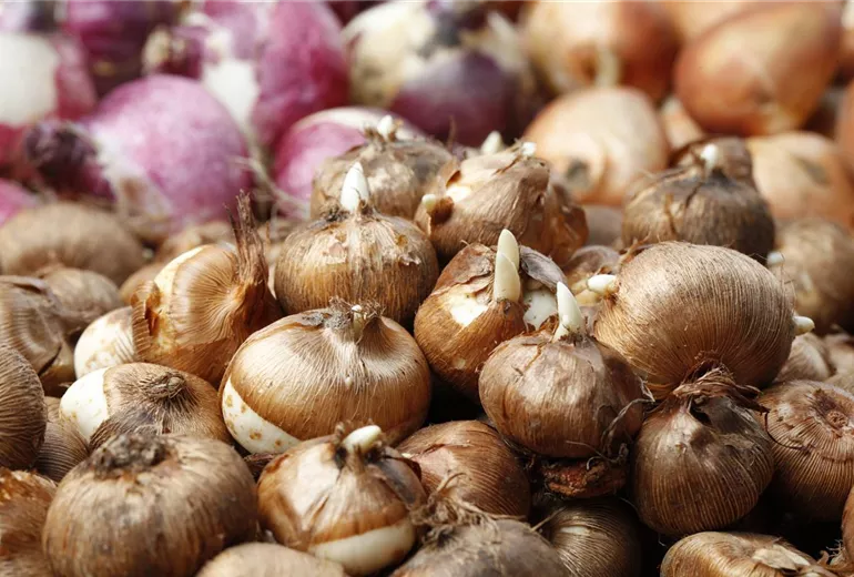 Wer sich im Frühling an botanischen Blumengrüßen im Garten erfreuen möchte, pflanzt Tulpen zwischen September und November. Erst wenn die Temperatur unter 10 °C sinkt, ist der beste Pflanzzeitpunkt gekommen. Tulpenzwiebeln bevorzugen sogar den einstelligen Bereich, um sich optimal zu entwickeln. Wenn es draußen also kalt genug ist, kommt die Blumenzwiebel in den Boden. Dabei muss ihre Spitze nach oben zeigen. Die Zwiebel wird 13 bis 15 cm tief in den Boden gesetzt und dann mit Erde bedeckt. Um Staunässe zu verhindern, können Sie eine Drainage aus grobem Kies oder Sand hinzugeben. Die Erde für Tulpen sollte grundsätzlich leicht sein und einen hohen Humusanteil aufweisen. Etwas sandiger Boden schadet auch nicht, er sollte aber durchlässig genug bleiben. Trotz der Pflanztiefe ist für das erste Jahr ein Winterschutz sinnvoll, damit die Blumen nicht erfrieren.
