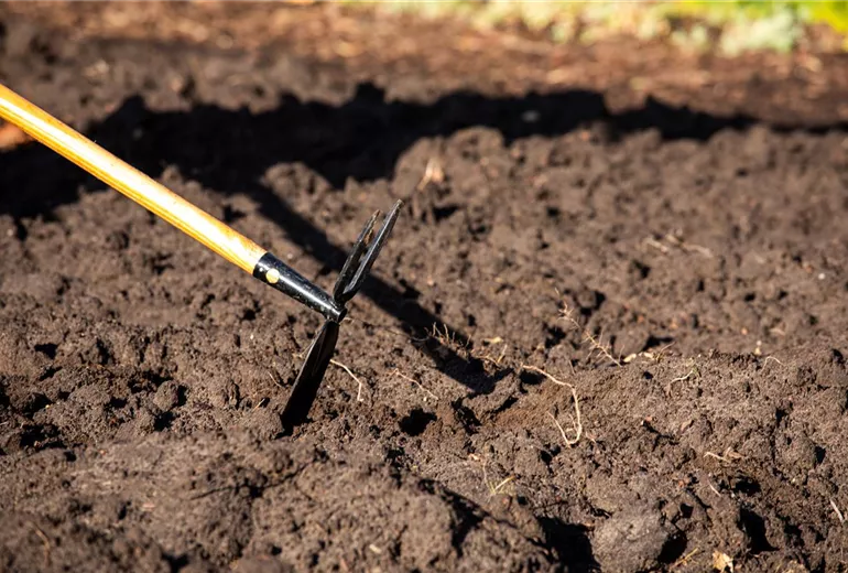 Wer zweijährigen und gut verrotteten Kompost zur Verfügung hat, kann ihn beim Düngen im Herbst im ganzen Garten anwenden. Auf die Bodenverbesserung hat er einen großen Einfluss, da er nicht nur den düngenden Nährhumus enthält, sondern auch den wertvollen Dauerhumus, der für eine langfristige Verbesserung des Bodens sorgt. Durch Kompost werden schwere Böden leicht und krümelig, während leichte Böden Nährstoffe und Wasser deutlich länger speichern können. Vor allem im Nutzgarten ist Kompost beim Düngen im Herbst sehr zu empfehlen. Da er langsam und über einen längeren Zeitraum wirkt, sollte er auf den unbepflanzten Beeten zwischen November und März ausgebracht werden. Dazu wird er einfach verteilt und nicht untergegraben, um dort zu wirken, wo sich später die Wurzeln der Gemüsepflanzen befinden.