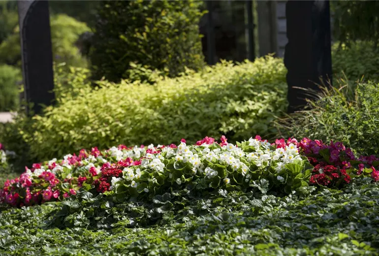 Als Angehöriger sollte man vor allem darauf achten, dass eine Grabstätte zu jedem Zeitpunkt im Jahr gepflegt ist. Um dies zu gewährleisten und auf der anderen Seite Zeit und Kosten einzusparen, sollte die Grabgestaltung mit Bedacht geplant sein. In den meisten Fällen besteht die Bepflanzung von Grabstätten, die als wichtigste Komponenten zur Grabgestaltung gehört, aus drei Bereichen. Im ersten Schritt sollten die sogenannten Rahmenpflanzen bestimmt werden. Als Rahmenpflanzen bezeichnet man in der Regel Gehölze, die den Grabstein und die Bodendecker einer Grabstätte farblich und aufgrund ihres Wuchses verbinden. Hier eignen sich klassische Gehölze wie Kiefer, Eibe oder Wacholder. Sie werden an das obere Ende des Grabes, jeweils neben dem Grabstein gepflanzt. Unterschiedliche Pflanzen ergeben ein stimmiges Gesamtbild und rücken den Grabstein in den Fokus.